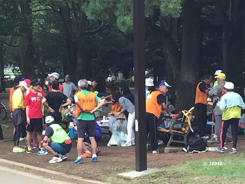 練習の合間にはエイドステーションで水分や糖質の補給が欠かせません。エイド担当のスタッフの皆さんも、休みなく対応してくれています。