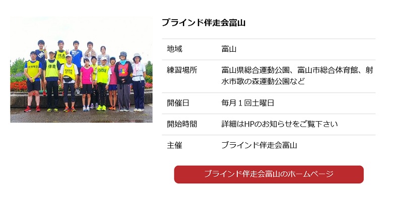 富山県内で活動している「ブラインド伴走会富山」の情報を掲載しました。