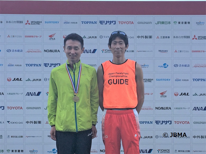 今回、急遽ガイドをお願いしました村上康則さん(富士通)は、日本陸上界でトップの実績を持たれている方で、快くレース伴走を引き受けていただき、