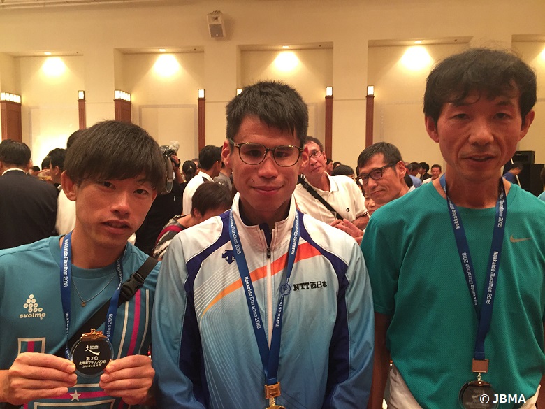 画像1 男子の表彰対象者 左から高井選手、堀越選手、岡村選手