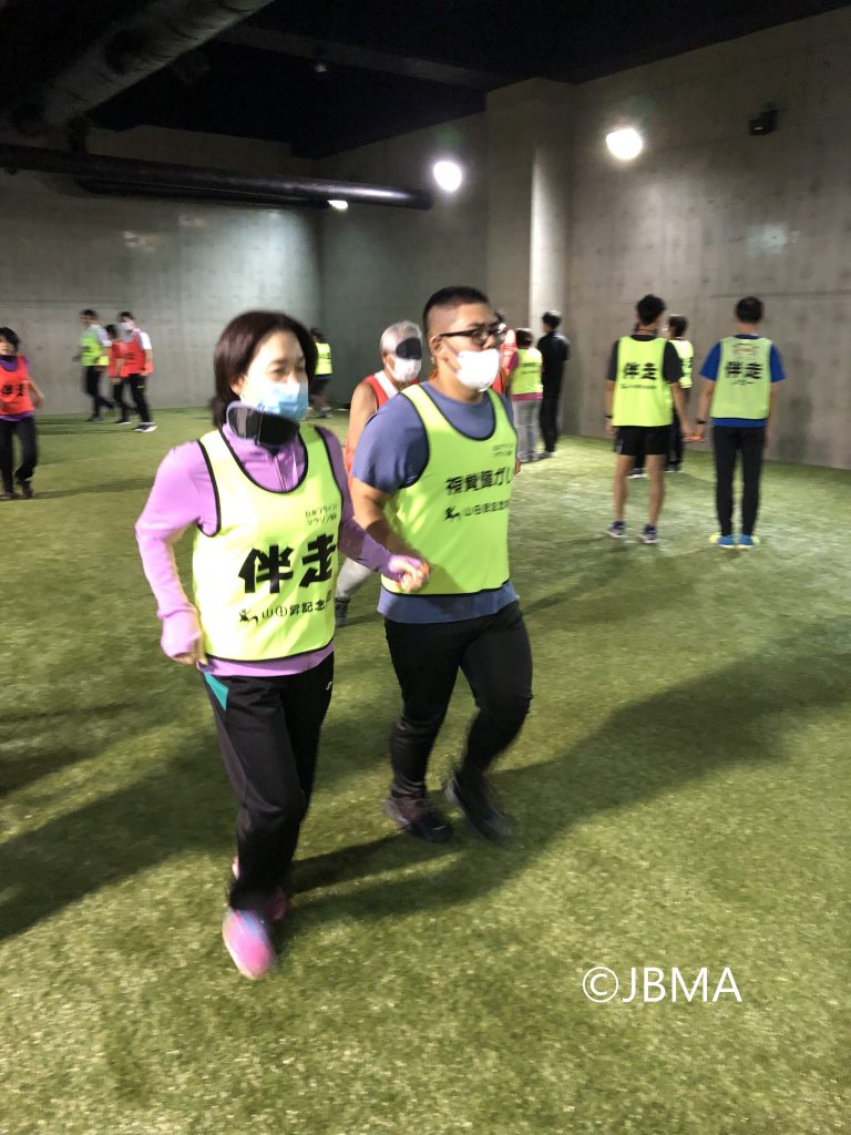 当日は視覚障がい者4名を含む38名の受講者が集まり、動画を見たり、アイマスク体験をしたり、実際にブラインドランナーの伴走をしたりと、伴走について熱心に学んでいらっしゃいました。