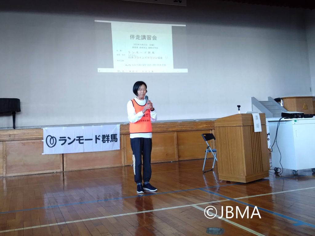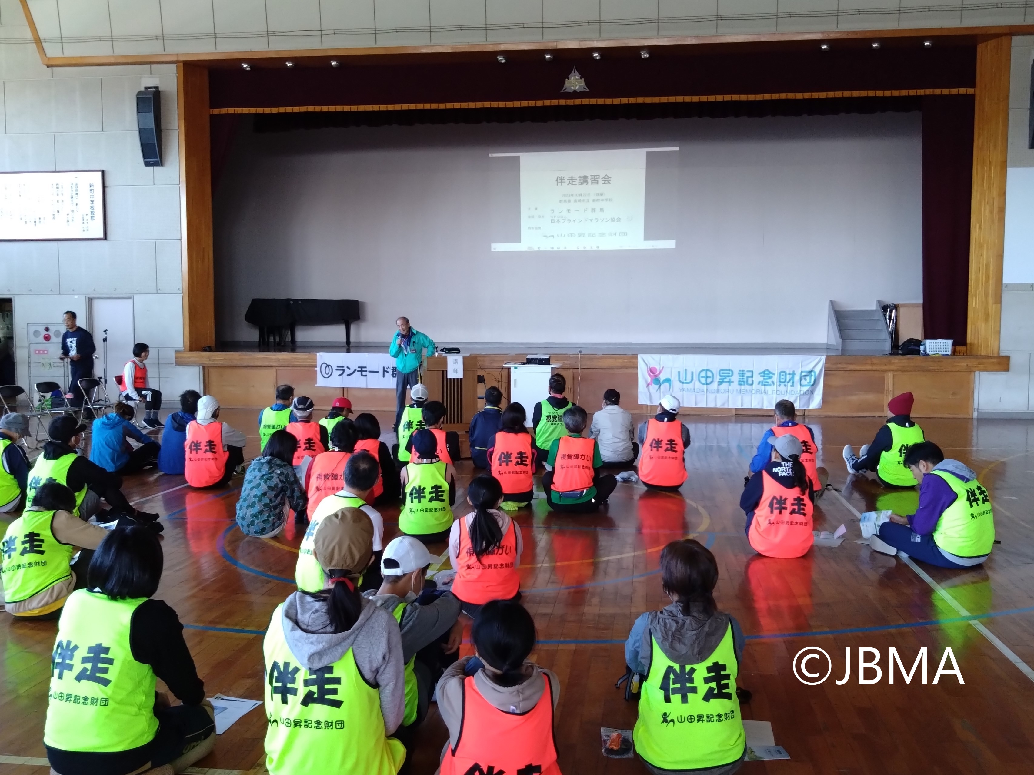 10月22日(日)、ランモード群馬主催による伴走講習会が、山田昇記念財団様の特別協賛により高崎市立新町中学校の体育館と校庭で開催されました。