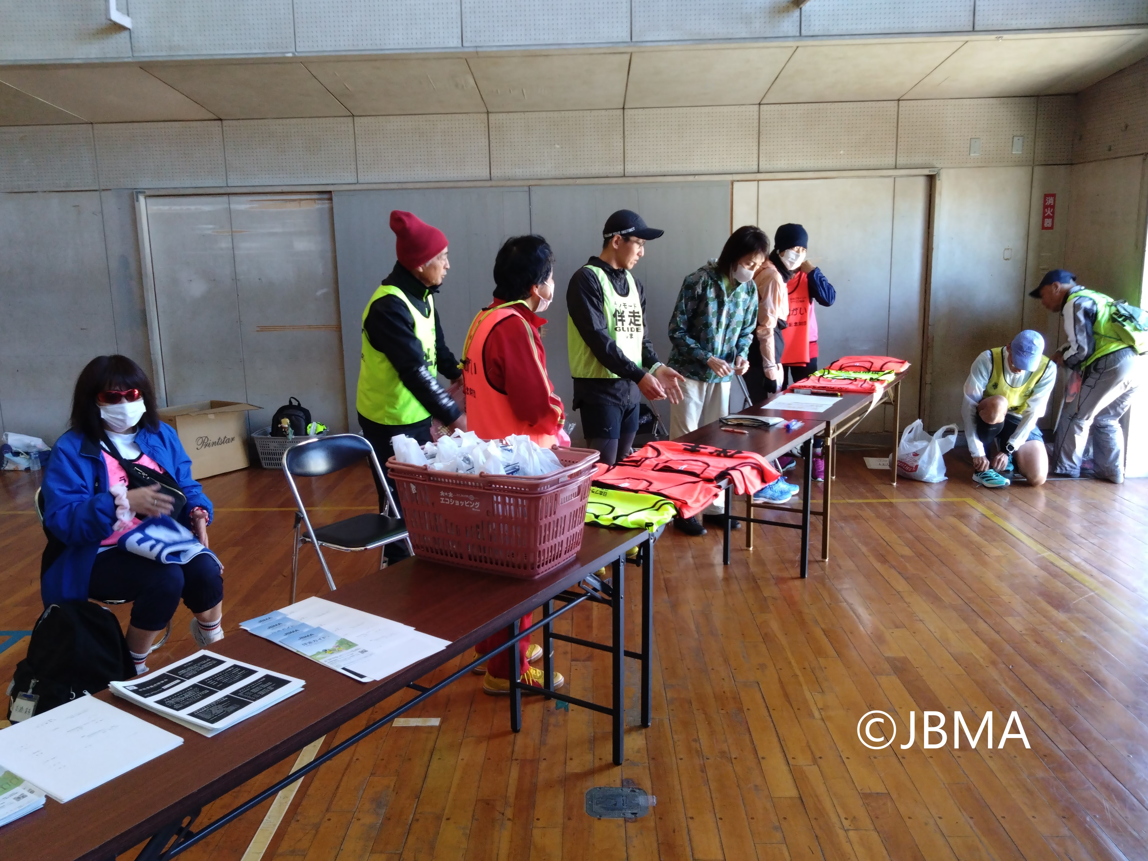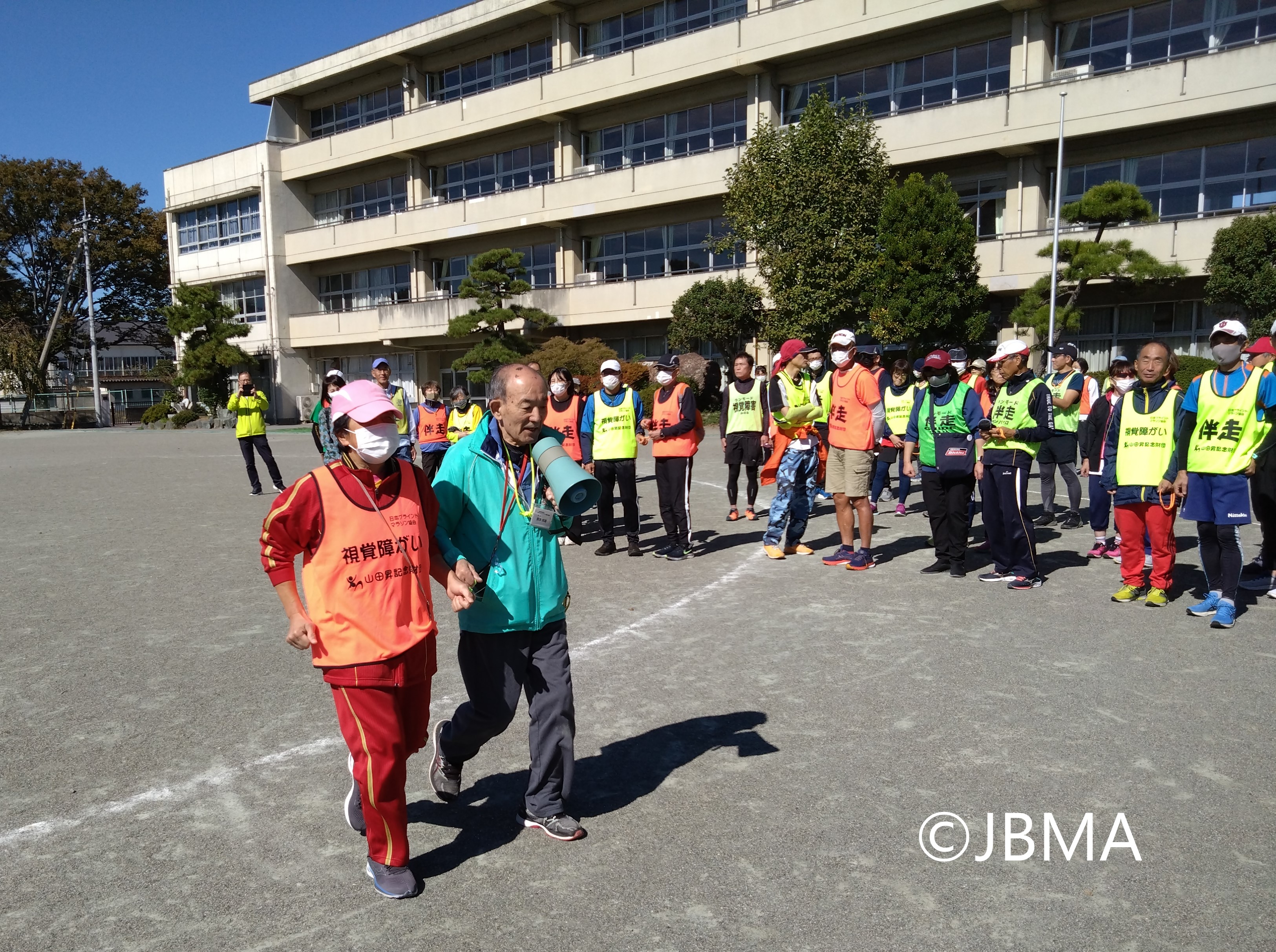 参加者には、山田昇記念財団様のご厚意により、特製の伴走ビブス(視覚障がいビブス)と伴走ロープ及び記念品が提供されました。