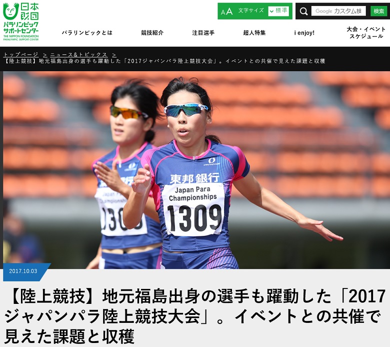 先日行われたジャパンパラ陸上競技大会のレポートがパラサポHPに掲載されました。