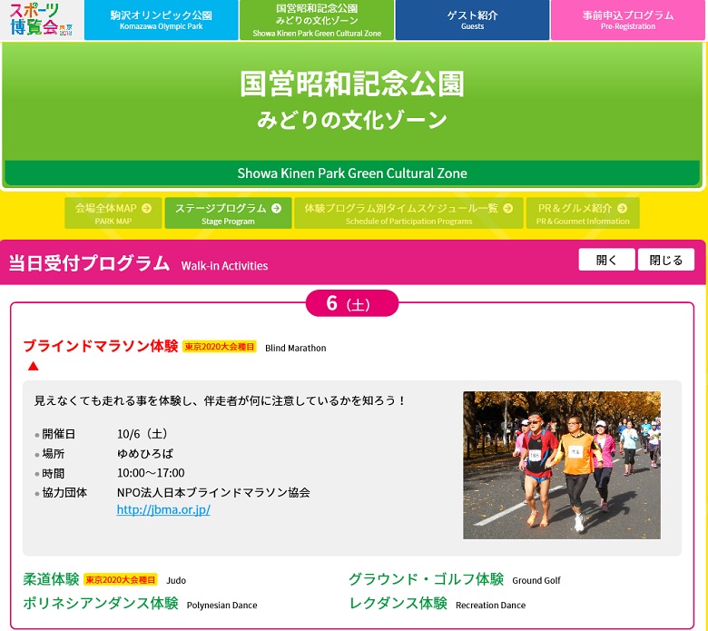 ブラインドマラソン体験は国営昭和記念公園で6日に行われます。