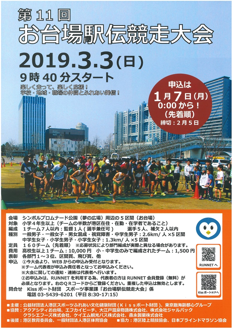 主催:公益財団法人港区スポーツふれあい文化健康財団(Kissポート財団)、東京臨海副都心グループ