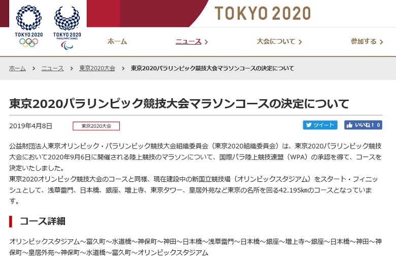 東京2020パラリンピックのコースが決定しました。