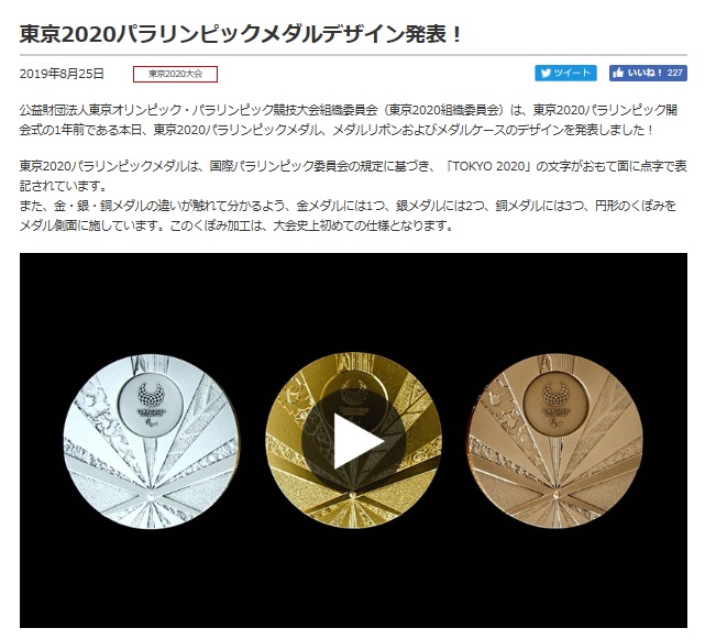 メダルは、国際パラリンピック委員会の規定に基づき、「TOKYO 2020」の文字がおもて面に点字で表記されています。
