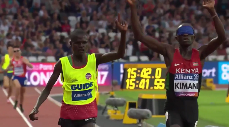 写真:優勝したキマニ選手(右)とガイドのBOIT James