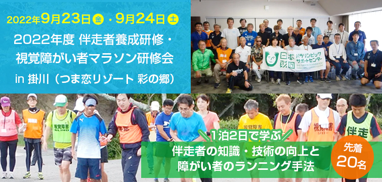 視覚障がい者を支える伴走者の知識・技術の向上と、障がい者のランニング手法を実践的に学ぶ研修会です。研修会は1泊2日で実施。パフォーマンスの向上を図りノーマライゼーションにつなげていきます。