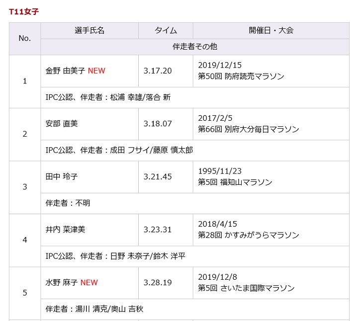 女子T12クラス 青木洋子選手 3時間09分55秒 歴代2位