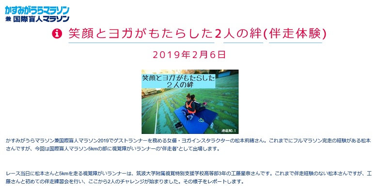 4月14日に開催されるかすみがうらマラソンのHPに、伴走体験のレポートが掲載されています。