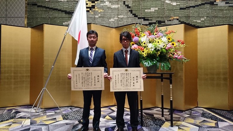 写真:表彰された安田コーチ(左)と熊谷選手(右)