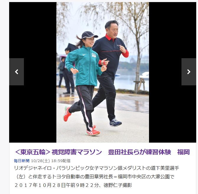 「視覚障害マラソン 豊田社長らが練習体験 福岡」