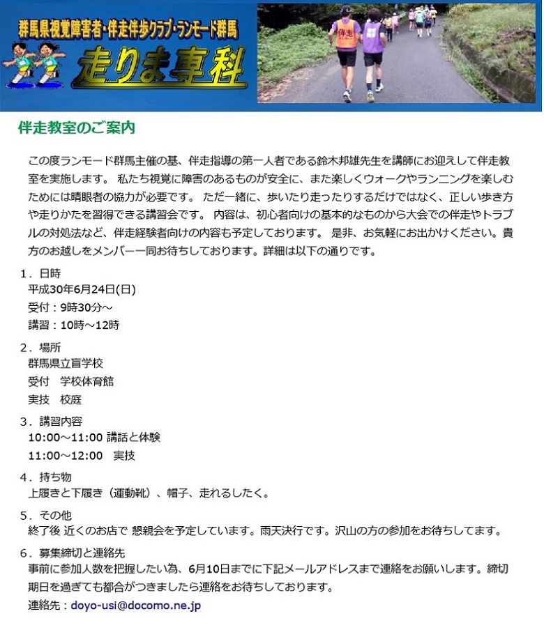 ご案内が遅くなりましたが、6月24日に群馬県前橋市にて伴走教室が開催されます。