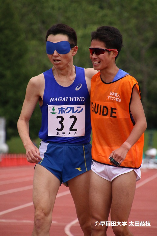 画像1:ホクレン北見大会で息の合った走りをみせた和田選手(左)と保倉ガイド(右)