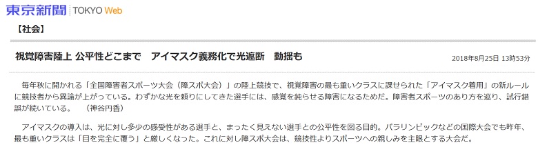 視覚障害陸上 公平性どこまで アイマスク義務化で光遮断 動揺も