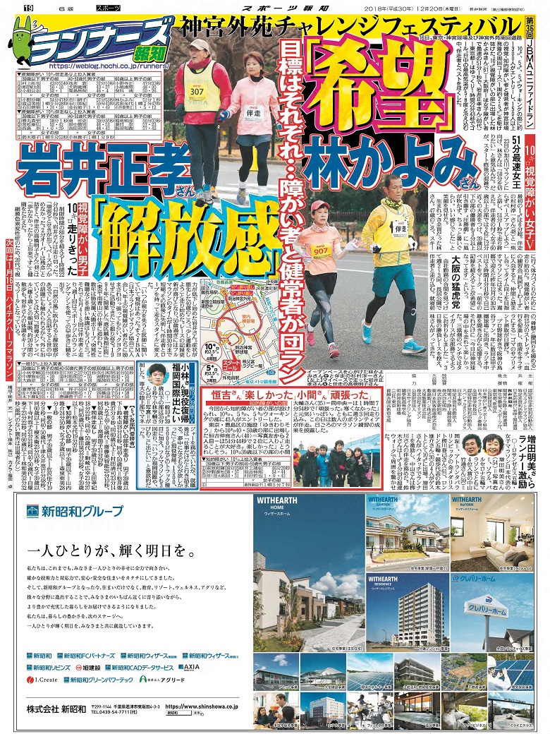 12月20日にスポーツ報知に掲載された、神宮外苑チャレンジフェスティバルの掲載紙面をスポーツ報知のご好意で掲載の許可をいただきました。
