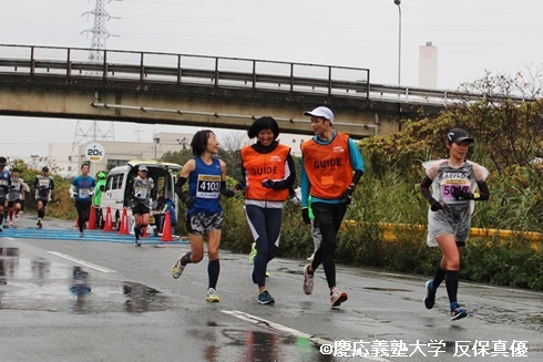 取材で一番印象的だったのは、試合後に選手たちが語った「多くの人に支えられている」という感謝の気持ちがこもった言葉だ。視覚障がい者マラソンは、ガイドランナーを必要とする選手が多い。ロープ掴んでパートナーとコミュニケーションをとって走るため、ガイドランナー次第で走り方も変わるという。基本的に前半後半で2人のランナーが伴走し、経過時間や道順、地面の状態などを伝えて声かけを行う。だが、大会に出場する伴走者だけでなく、一週間に10人以上のランナーと練習を積んでいる選手もいる。人と人との出会い、つながりを通して選手たちが強くなっていくところや、道下選手が「チーム戦」と話すようにみんなで目標を成し遂げるために一つになる、という点がほかにはないブラインドマラソンの醍醐味だと感じた。だがまだまだ伴走ランナーの数は十分ではなく、安心して練習できる場所も足りていない。毎月第一日曜日には、だれでも参加可能な伴走者講習会が代々木公園で開かれている。一人でも多くの人がブラインドマラソンに触れ、素敵なランニングの輪が広がっていけばいいなと思う。