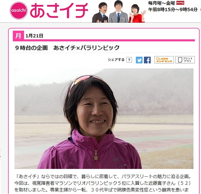 既に放送が終わってしまいましたが、1月21日のNHKあさイチにて近藤寛子選手が紹介されました。