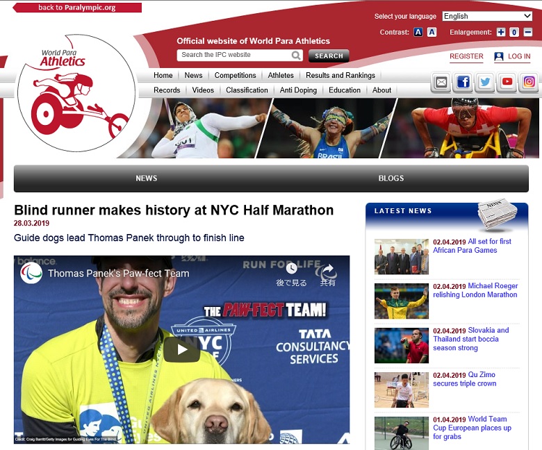 先日、ニューヨークシティハーフマラソンを盲導犬と共に完走した記事をお知らせしましたが、WPAのHPでも掲載されています。和訳した内容をご紹介します。