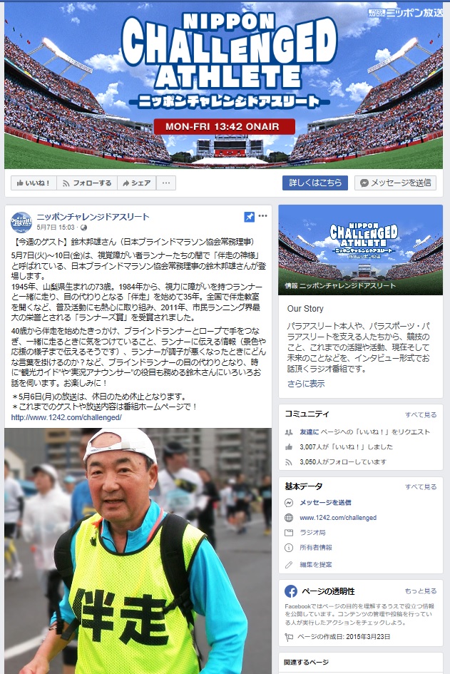 ニッポン放送ラジオで放送されているニッポンチャレンジドアスリートに鈴木邦雄さんが出演しています。