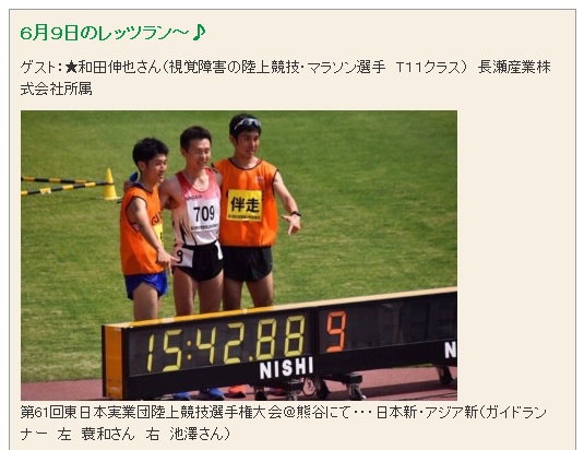走るパーソナリティ若林順子さんのレッツランのHPに和田伸也選手のインタビュー記事が掲載されています。