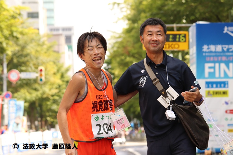 先月25日、北海道マラソン2019が札幌市中央区の大通公園を中心に行われた。今大会は東京パラリンピックのブラインドマラソンの代表推薦選手選考大会。2020年に行われる東京パラリンピック開幕までちょうど1年という日に開催された。男子視覚障がいIPC登録者に限ると、11名が走り、熊谷豊(32=三井住友海上)が2時間32分20秒の2位で東京パラリンピック代表推薦選手に決まった。今大会の優勝は高井俊治(32=D2C)で2時間30分54秒。自己ベストを3分32秒縮める快走をみせた。