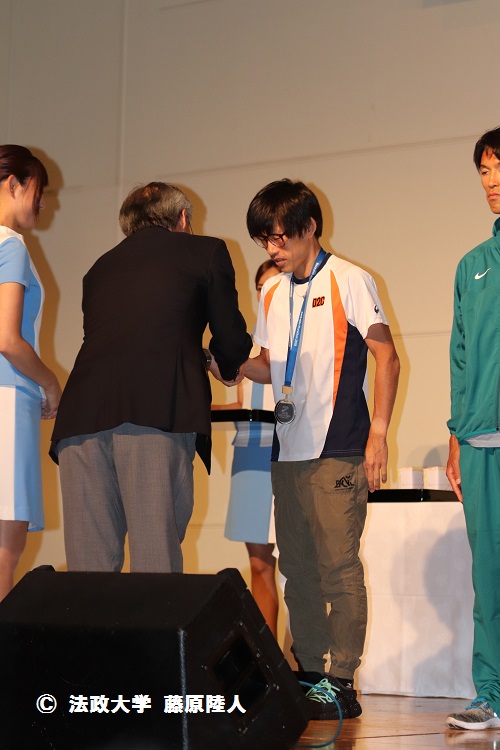 写真3:大会後笑顔をみせる高井(左)と安田ブラインドマラソン協会理事強化委員長(右)