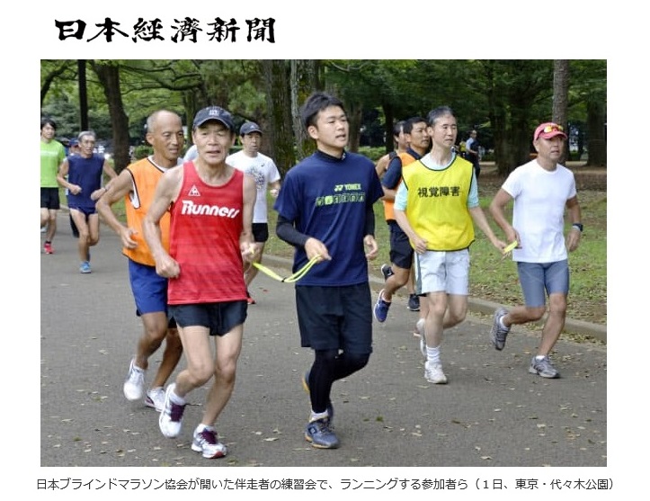9月25日(木曜)の日本経済新聞 夕刊に「視覚障害の伴走者を増やそう 各地で練習会」として代々木定例練習会の様子が掲載されました。