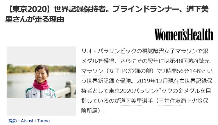 Woman in Sports Award 2019 パラアスリート部門を受賞した道下美里選手のインタビュー記事が『Women's Health』に掲載されました。