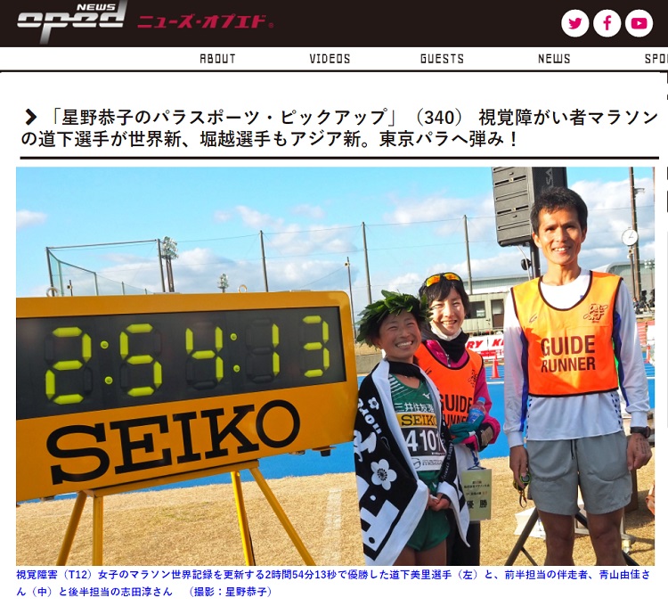 「星野恭子のパラスポーツ・ピックアップ」視覚障がい者マラソンの道下選手が世界新、堀越選手もアジア新。東京パラへ弾み!