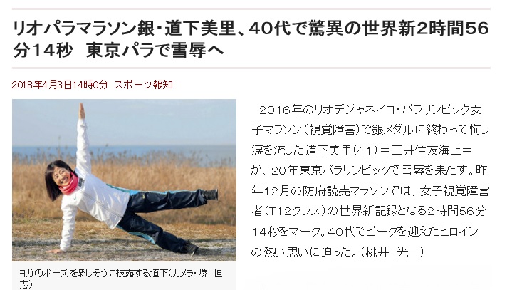 リオパラマラソン銀・道下美里、40代で驚異の世界新2時間56分14秒 東京パラで雪辱へ