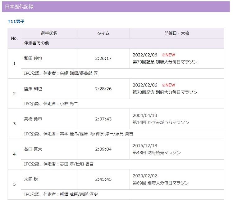 2022年2月6日に開催された第70回記念別府大分毎日マラソンにおいて、歴代記録を更新する記録が3つ誕生しました。