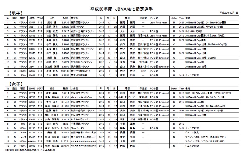 平成30年度の強化指定選手に新たに3名が加わり、男子13名、女子13名の合計26名となります。