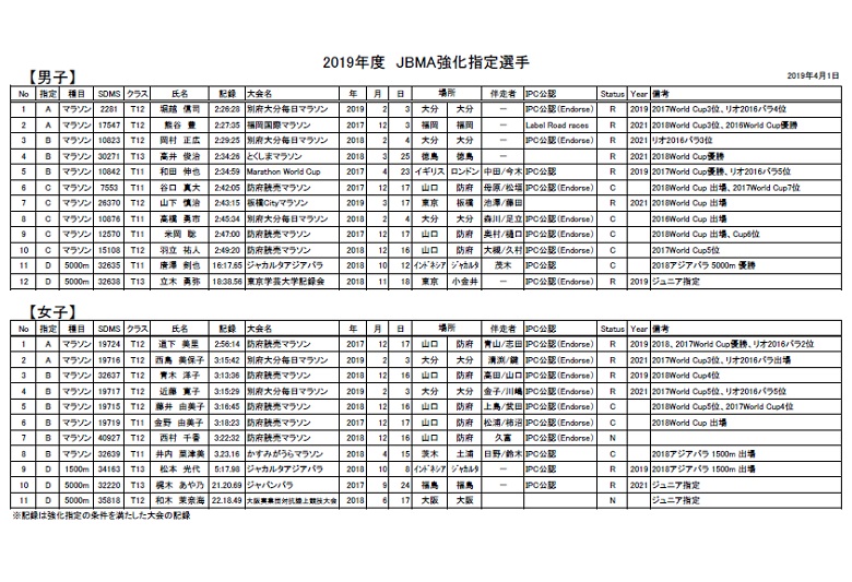 強化指定選手一覧のPDFはこちら 2019年度強化指定選手。