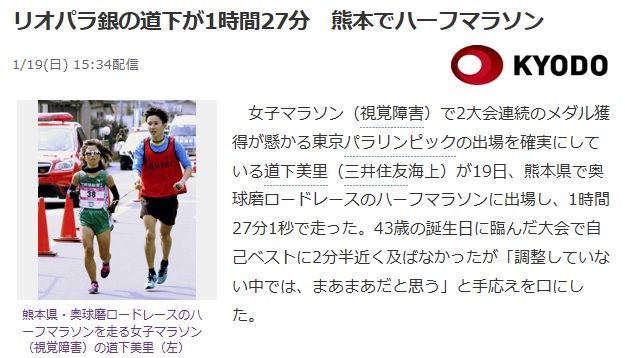 「リオパラ銀の道下が1時間27分 熊本でハーフマラソン」